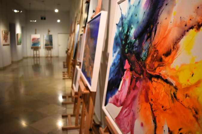 Prezentowane Galerii OKNA obrazy to abstrakcje wykonane w technice pouringu, czyli malowania płynnymi farbami akrylowymi zmieszanych z substancjami, które - stosowane w różnych konfiguracjach i z użyciem różnych środków - dają niepowtarzalne efekty.