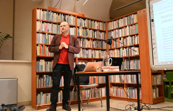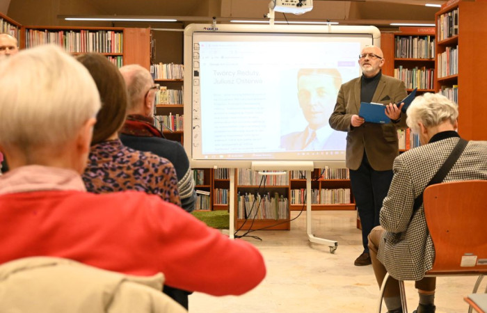 Tym razem wykład o tytule „Księżycowy Julek, czyli o szalonych (?) pomysłach Juliusza Osterwy” wygłosił dr Jarosław Cymerman – teatrolog, literaturoznawca i edytor, członek-założyciel Polskiego Towarzystwa Badań Teatralnych oraz pracownik Katedry Literatury Współczesnej UMCS, zajmujący się historią teatru polskiego, dramaturgią XIX i XX wieku, a także twórczością Józefa Czechowicza. Nasz gość zaprezentował słuchaczom historię życia fascynującej postaci Juliusza Osterwy oraz wprowadził ich w tematykę Reduty: laboratorium teatralnego.