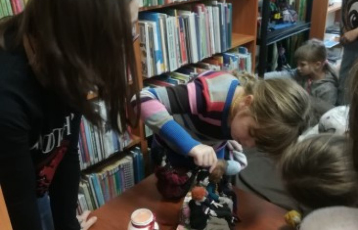 Pani Aleksandra opowiedziała o tym, jak tworzy swoje lalki. Dowiedzieliśmy się, że jest jedną z niewielu osób w Polsce, które tworzą lalki od początku do końca samodzielnie. Każda z lalek ma swoją historię, imię, a wiele z nich ma swój pierwowzór w literaturze i w filmie. Dzieci były bardzo aktywne i zainteresowane i zasypywały Panią Aleksandrę licznymi pytaniami. Wystawę lalek można oglądać w naszej Filii do 15 lutego. Serdecznie zapraszamy.