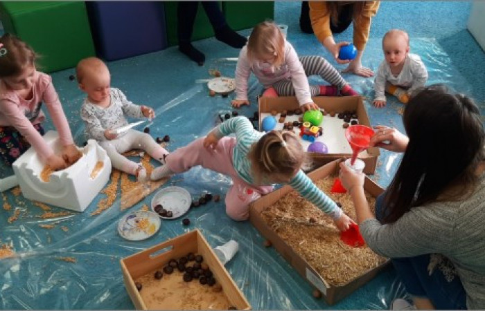 Rozpoczęliśmy je od oglądania książeczek, w których wykorzystane zostały różne faktury. Dzieci miały możliwość chodzić po ścieżce sensorycznej, poznawać balony wypełnione różnymi substancjami, przesypywać ziarna, przekładać i przenosić kasztany oraz orzechy, a także manipulować elementami tablicy sensorycznej. Dziękujemy za udział w zajęciach i zapraszamy do obejrzenia relacji!