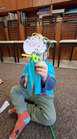Dziecko prezentuje kukiełkę wykonaną z papieru i materiału
