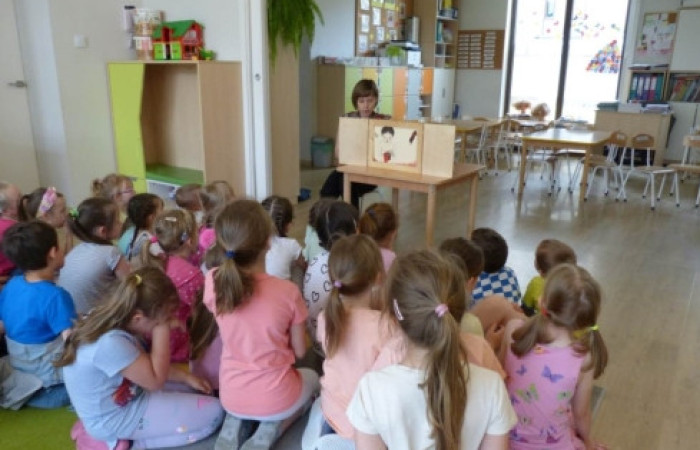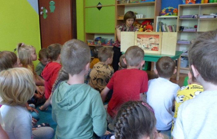 Z okazji Ogólnopolskiego Tygodnia Czytania Dzieciom pani bibliotekarka z Filii nr 36 odwiedziła Przedszkole Lubelskie Skrzaty oraz Przedszkole Niebieski Koralik i przyniosła ze sobą niespodziankę, teatrzyk kamishibai.