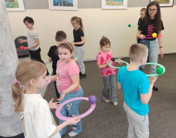 Jak co roku w ferie w Filii nr 36 odbywają się ciekawe warsztaty. W pierwszym tygodniu ferii dobrą zabawę zapewniła Fundacja Ośmiornice Kreatywności organizując trzydniowe warsztaty żonglersko-ruchowe, w których udział wzięło 10 osób.