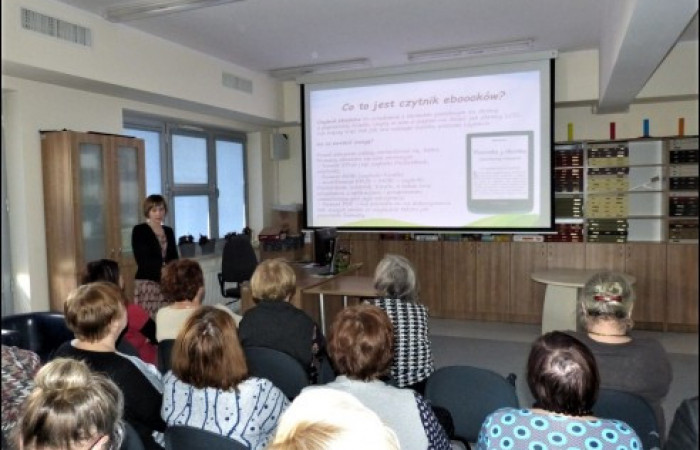 Celem zajęć była promocja i popularyzacja e-booków i e-czytania. W prelekcji uczestniczyli seniorzy z Akademii Seniora oraz Klubu "Felin".