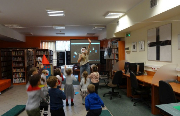 Filia 34 włączając się w obchody stulecia urodzin Stanisława Lema przygotowała dla najmłodszych czytelników cykl spotkań „Kosmos pełen zagadek”.