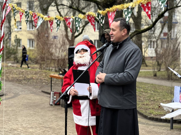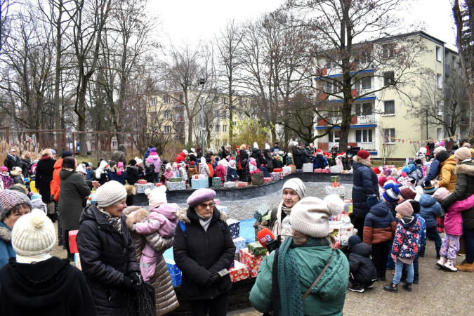 Wszyscy, którzy odwiedzili plac na osiedlu Mickiewicza, mogli też liczyć na świąteczny poczęstunek - czerwony barszcz, strucle makowe i cukierki.