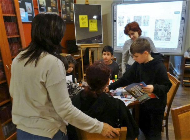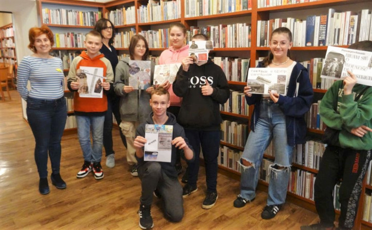 Z okazji 80. rocznicy powstania w Getcie Warszawskim w Filii nr 21 przygotowano także warsztaty plastyczne, by upamiętnić pierwsze powstanie miejskie w okupowanej Europie, które stanowiło największy zryw ludności żydowskiej w czasie II wojny światowej. Wyrażeniem emocji związanych z poczuciem zagrożenia wobec takich sytuacji były kolaże wykonywane przez uczniów klasy V ze Szkoły Podstawowej nr 24. Gościłyśmy także młodzież z klasy VII, która w szczególnie dojrzały sposób podeszła do tematu i zaprezentowała bardzo refleksyjne prace plastyczne.