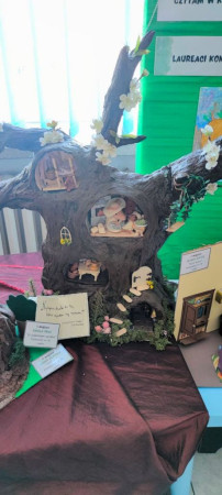 Przestrzenna praca plastyczna przedstawiająca dom w drzewie - I nagroda