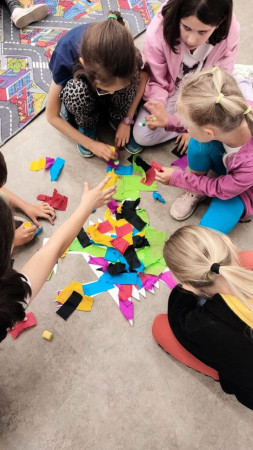 Podczas zajęć uczestnicy zapoznali się z opisanymi w książce emocjami i odpowiadającym im kolorom. Każde spotkanie miało na celu oswojenie dzieci z emocjami, jakich na co dzień doświadczamy. W trakcie trwania warsztatów wykonywały zadania plastyczne oraz ruchowe. Na zakończenie wzięły udział w grze w "podchody", która polegała na odnajdywaniu listów ukrytych w bibliotece przez Kolorowego Potwora.