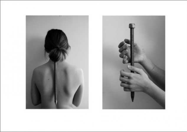 Maja Ćwiek - [na dwóch fotografiach fragment pleców i ramienia młodej kobiety z wyrastającymi z nich gwoździami]