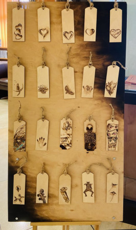 Oprócz dużych form - obrazów wypalanych w drewnie, obejrzeć można również mniejsze - zakładki do książek. Te z kolei inspirowane są miłością do literatury i chwil spędzanych z książką. To małe przedmioty, które mogą towarzyszyć czytelnikom w ich własnych historiach.