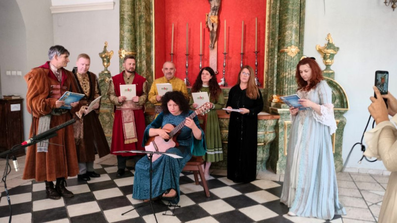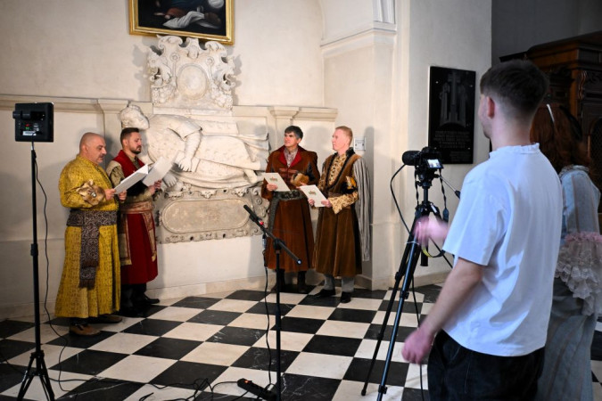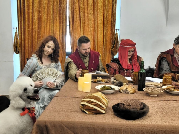 Zaprosiliśmy również do suto zastawionego biesiadnego stołu, gdzie - jak to przy biesiadzie bywa - nie zabrakło okazji do rozmów, przechwałek, konfliktów, ale i wzruszeń czy momentów zadumy. Wśród gości dumnie przechadzają się pudle królewskie - wierni towarzysze szlachty na polskich dworach. W sielankowy nastrój wprowadzają inscenizacje do "Pieśni o Sobótce"... Z kolei wprawne oko miłośnika twórczości Kochanowskiego i samego Lublina z pewnością wychwyci w filmie nawiązania do związków poety z naszym regionem.