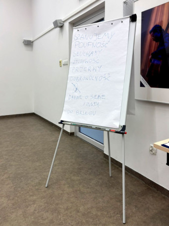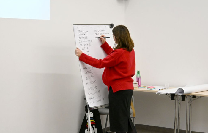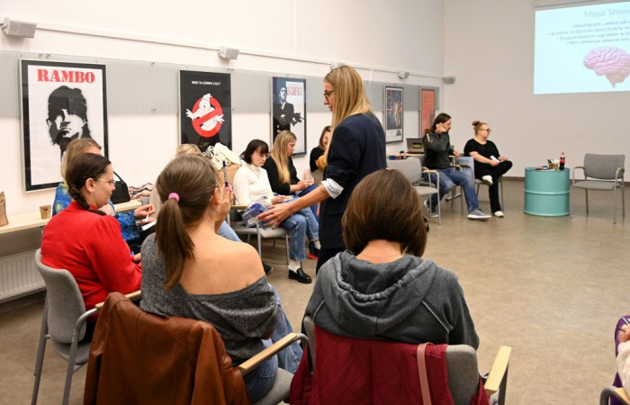 Dodatkowo prowadząca omówiła mapy stresu: mechanizmy i sygnały płynące z ciała i umysłu, zaprezentowała techniki oddechowe, wskazała, jak wspierać komunikację w stresie oraz zaproponowała pracę z wewnętrznym dialogiem, łączącą oddech i myśli.