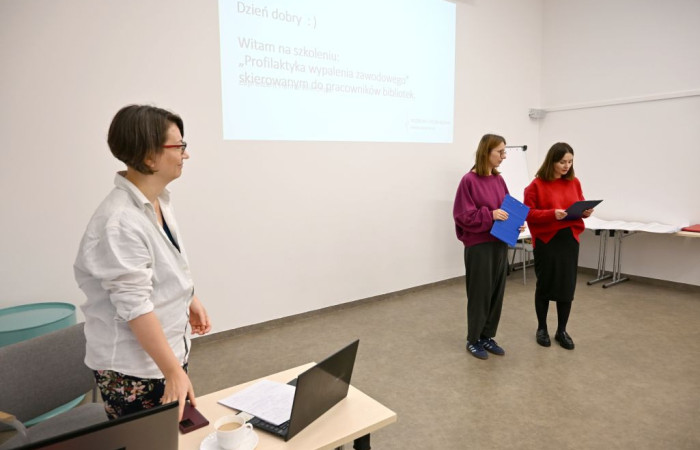 Podczas szkolenia uczestnicy przyjrzeli się zjawisku wypalenia zawodowego, które coraz częściej dotyka osoby pracujące w zawodach pomocowych, w tym bibliotekarzy. Prowadząca omówiła jego przyczyny, objawy oraz czynniki ryzyka, zarówno indywidualne, jak i wynikające ze środowiska pracy. Szczególny nacisk został położony na praktyczne sposoby dbania o dobrostan emocjonalny i fizyczny, które mogą pomóc w zapobieganiu temu zjawisku.