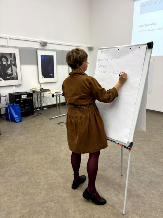Tym razem bibliotekarze uczestniczyli w szkoleniu zatytułowanym „Asertwyność w pracy bibliotekarza”, które poprowadziła Hanna Wierchoła - pedagożka i trenerka rozwojowa, absolwentka pedagogiki specjalnej na UMCS w Lublinie. Wiedzę i umiejętności oraz narzędzia trenerskie zdobywała w Szkole Trenerów Progress w Lublinie. Od wielu lat wspiera osoby przechodzące przez życiowe zmiany, prowadząc autorskie warsztaty i sesje indywidualne. Zdobyte doświadczenie poszerza w ramach działalności Rozmowy i Rozwiązania - Hanna Wierchoła, bazując w swojej pracy na terapii skoncentrowanej na rozwiązaniach (TSR).