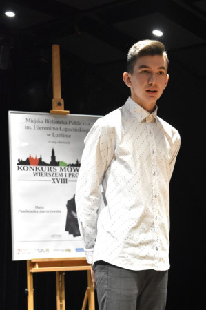 Za nami drugi etap XVIII Konkursu Mówienia Wierszem i Prozą organizowanego co roku przez Miejską Bibliotekę Publiczną im. H. Łopacińskiego w Lublinie. Wydarzenie – w ubiegłych latach odbywające się pod nazwą: Miejski Konkurs Recytatorski – ma na celu nie tylko doskonalenie umiejętności recytatorskich młodzieży, ale także kształtowanie ich wrażliwości na bogactwo języka literackiego i popularyzację kultury polskiej. Dlatego każdego roku uczestnicy mierzą się z dorobkiem artystycznym wybranego pisarza o wybitnych zasługach w dziedzinie literatury krajowej.