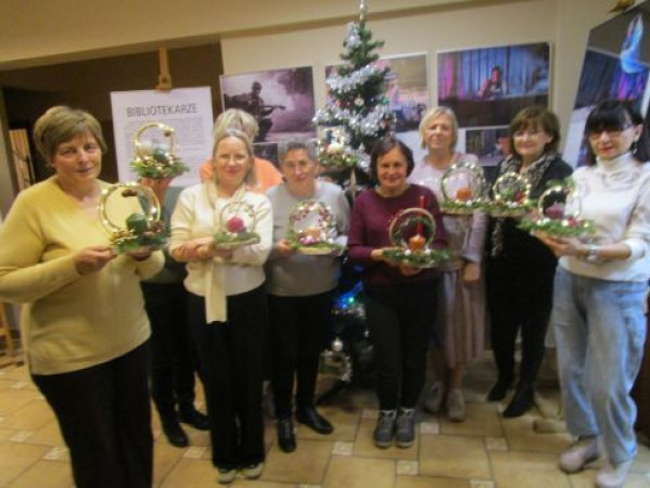 W ramach Festiwalu Bożego Narodzenia w bibliotece odbyły się wyjątkowe spotkania pełne twórczej atmosfery i świątecznej radości. Zorganizowano warsztaty haftu matematycznego, podczas których seniorki z zaangażowaniem wyszywały piękne kartki świąteczne. Również miały miejsce rodzinne warsztaty tworzenia ozdób choinkowych, które zgromadziły dzieci i dorosłych przy wspólnej pracy. Kulminacyjnym momentem było wspólne ubieranie choinki, a całe wydarzenie zakończyła wizyta Świętego Mikołaja, który obdarował uczestników prezentami. Spotkanie stało się okazją do integracji i wprowadziło wszystkich w magiczny nastrój Świąt. Dodatkowo na każdego czytelnika, który odwiedził bibliotekę czekał pięknie zapakowany prezent książkowy.