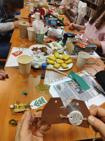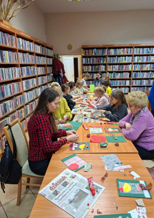 Idea Festiwalu Bożego Narodzenia połączyła do wspólnego działania trzy Kluby działające w naszej bibliotece: Klub Strzał w 10, Mamotekę i Dyskusyjny Klub Książki. Wspólna zabawa połączyła pokolenia, a świąteczna atmosfera udzieliła się wszystkim. To, co zaczęło się jako wspólna inicjatywa, zamieniło się w żywy, radosny obraz współpracy i kreatywności. Powstały wyjątkowe ozdoby, piękne kartki, a uśmiech towarzyszył nam przez cały czas.