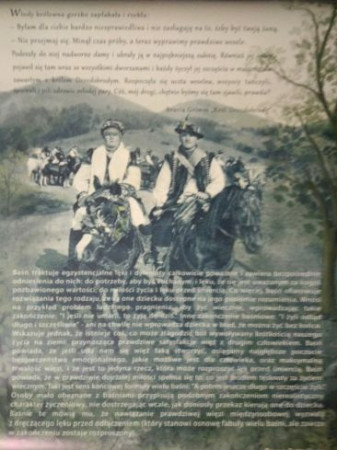 Baśnie są tworem tajemniczym, czytając je przeżywamy coś nieuchwytnego, co jednak dociera głęboko i zostawia swój ślad. W wystawie wykorzystano fragmenty baśni Braci Grimm oraz prac "Cudowne i pożyteczne" Brunona Bettelheima, "Ścieżki baśni" Jadwigi Wais, "Dziewczynka w baśniowym lesie" Pierre'a Péju.