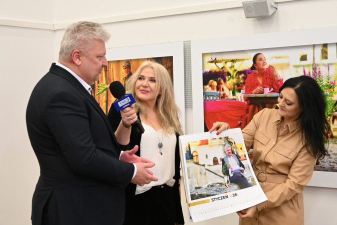 Honorowi goście wernisażu - dziennikarze TVP - wspominali o swoich doświadczeniach i humorystycznych sytuacjach podczas sesji fotograficznych.