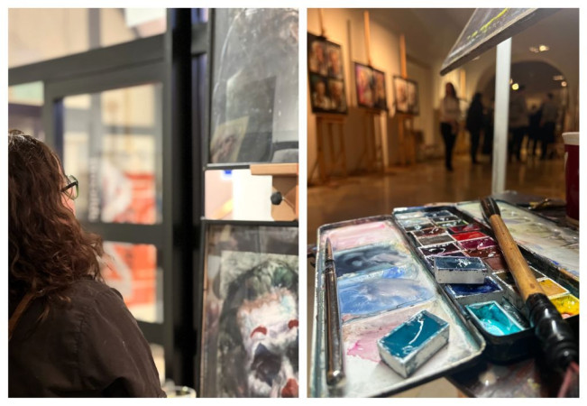 Po oficjalnej części wernisażu ponownie rozbrzmiała muzyka skrzypcowa, a chwilę później Miłosz Nosiadek uchylił rąbka tajemnicy swojego warsztatu, na oczach gości malując z fotografii portret Krzysztofa Cugowskiego.