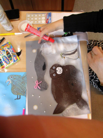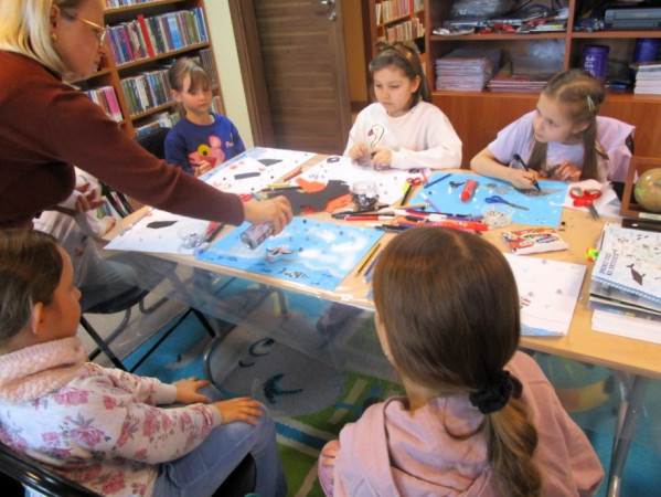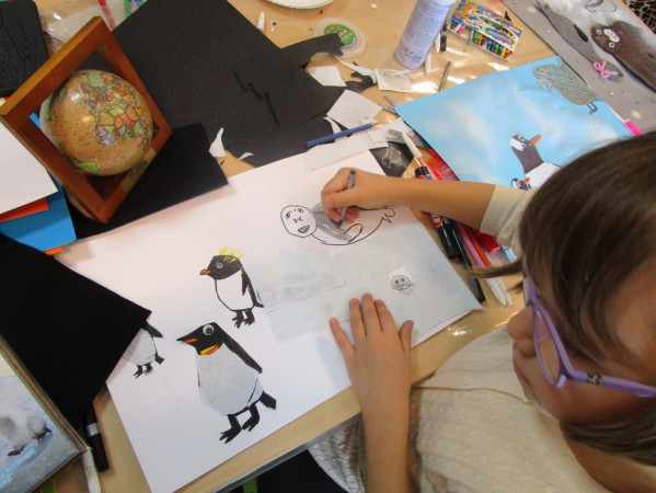 Zajęcia plastyczne w bibliotece - powstają prace inspirowane Antarktydą