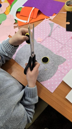 Dziecko tworzy pracę plastyczną w kształcie kota