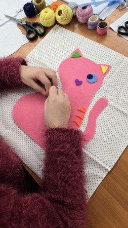 Praca plastyczna przedstawiająca kota w kolorze różu - w trakcie powstawania
