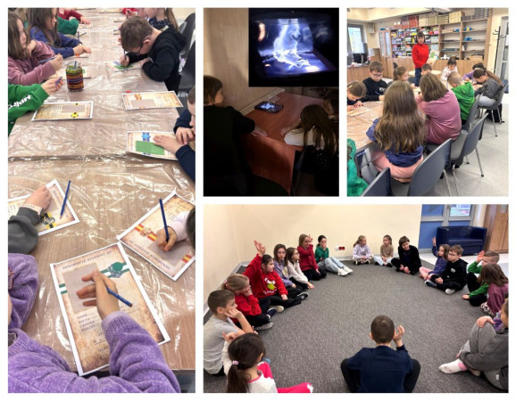 W ramach akcji „Zima w mieście” odbyła się lekcja biblioteczna oraz zabawa karnawałowa dla dzieci z grup „Biedronki” i „Stokrotki” z Przedszkola nr 46 w Lublinie, a także dla podopiecznych Centrum Aktywności Środowiskowej w Lublinie. Spotkanie rozpoczęliśmy od zapoznania się z książką „Pętelkowy bal choinkowy”. Zorganizowano również lekcję biblioteczną i zabawy pod hasłem „Zimowa Dinokraina” dla dzieci z grupy „Żuczki” z Przedszkola z Oddziałami Integracyjnymi nr 36 „Tęczowa Łąka” w Lublinie. W trakcie zajęć korzystaliśmy z książki „Franklin na wycieczce” oraz innych książek o dinozaurach dostępnych w naszej bibliotece.