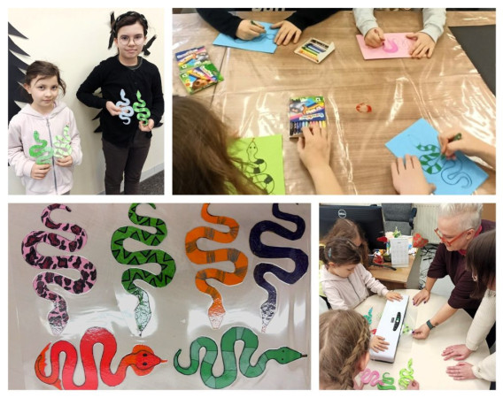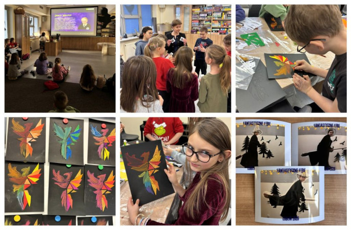Ostatniego dnia naszych ferii uczestnicy obejrzeli prezentację "Fantastyczne stworzenia w literaturze dla dzieci i młodzieży". Dzieci kontynuowały pracę grupową nad obrazami-wyklejankami przedstawiającymi sowy. Efekt końcowy zachwycił wszystkich! Uczestnicy rozwiązywali też zagadki i quizy sprawdzające wiedzę o Harrym Potterze. Na zakończenie naszej fantastycznej przygody powstały zakładki w formie kolorowych, magicznych węży.