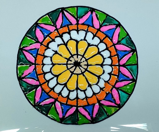 Kolorowy witraż inspirowany gotycką rozetą