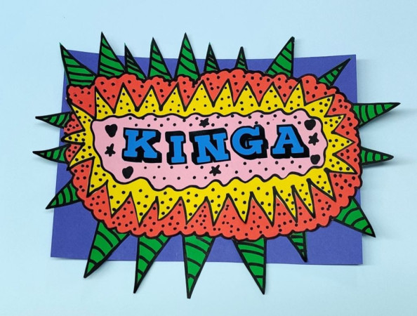 Imię "Kinga" w formie kolorowej grafiki w stylu pop art