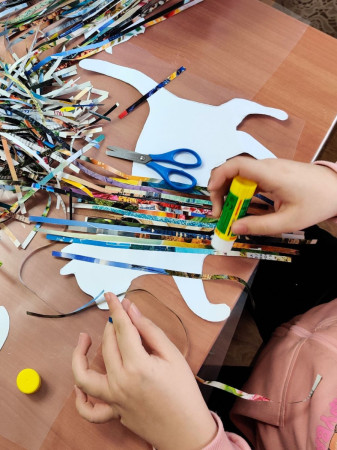 Kolaż z pasków papieru w trakcie tworzenia