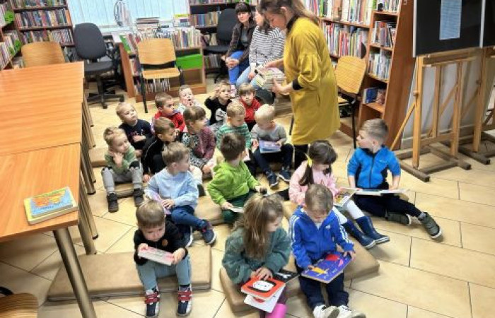 25 kwietnia po raz pierwszy odwiedziła naszą filię najmłodsza grupa dzieci z przedszkola nr 22. Z historyjki o śwince Peppie dzieci dowiedziały się o zasadach korzystania z biblioteki. Odgadywały literki znajdujące się na przekładkach. Potem oglądały najpiękniejsze książeczki dla najmłodszych czytelników. Następnie odczytany został wiersz pt. „List od pani Wiosny”. Po wspólnej zabawie ruchowej przy muzyce, dzieci rysowały barwne motyle.