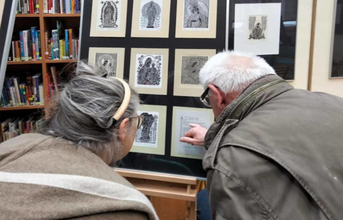 Wyjątkowe linoryty pana dr. Zbigniewa Jóźwika przyciągnęły sporą publiczność na wernisaż w naszej filii. Cykl "Madonny" wzbudza zachwyt zarówno przedstawieniem niezliczonych wizerunków Maryi jak i maestrią wykonania dzieł. Rozmowom i pytaniom nie było końca. Niespodzianką była loteria, w której można było wylosować jeden z linorytów Zbigniewa Jóźwika.