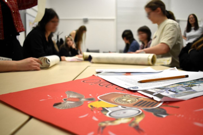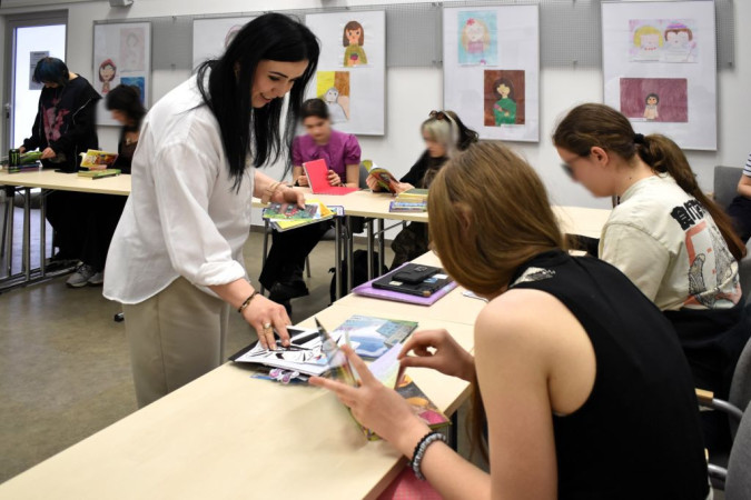 Prowadząca warsztat ilustratorka w rozmowie z uczennicami