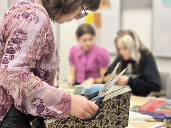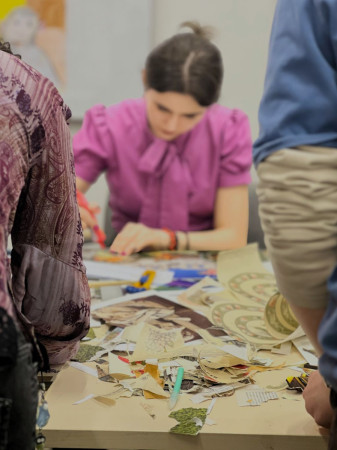 Trwa praca nad kolażami podczas zajęć ilustratorskich
