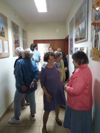 W czwartek 9 maja 2024 r. odwiedzili nas zaproszeni goście z Centrum Seniorów na Czechowie i rozpoczęliśmy sezon wiosennych wypraw z obrazem i książką. Tym razem obejrzeliśmy w holu biblioteki wystawę fotografii Krystyny Szymańskiej pt. ”Cerkwie Polski Wschodniej”.