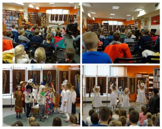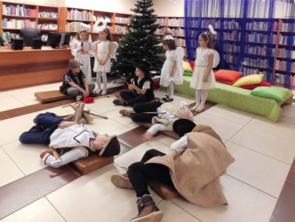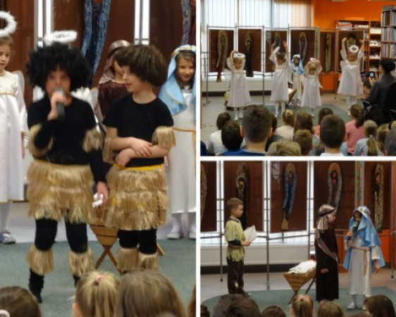 Przedszkolaki „Dzieciaki.pl” zawitały 18 grudnia w Filii nr 37 z przedstawieniem jasełek. Widzami były dzieci z pobliskich przedszkoli, uczniowie ze Szkoły Podstawowej nr 4 w Lublinie oraz czytelnicy Filii nr 37. Mali aktorzy starali się jak najpiękniej odegrać swoje role, wczuwali się w grane przez siebie postacie, recytowali wiersze. Spektakl zakończono wspólnym śpiewaniem kolędy „Dzisiaj w Betlejem”, która w interpretacji dzieci brzmiała niepowtarzalnie i wyjątkowo. Wszyscy z zadowoleniem nagrodzili młodych artystów gromkimi brawami!