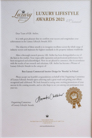 Tym razem wygrała w kategorii najlepsze wnętrze publiczne w polskim etapie konkursu European Property Awards 2021-2022 zdobywając najwyższy możliwy wynik 5 gwiazdek. Tym samym przeszła do kolejnego etapu i będzie reprezentowała Polskę na arenie międzynarodowej. Wyniki z etapu europejskiego poznamy pod koniec lutego.