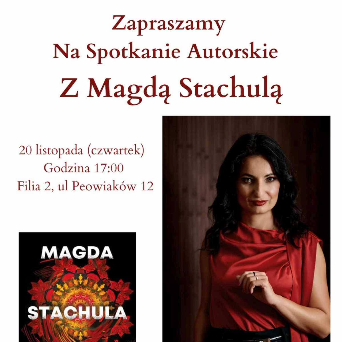 Zapraszamy wszystkich miłośników literatury na spotkanie autorskie z Magdą Stachulą, które odbędzie się 20 listopada (czwartek) o godzinie 17.00.