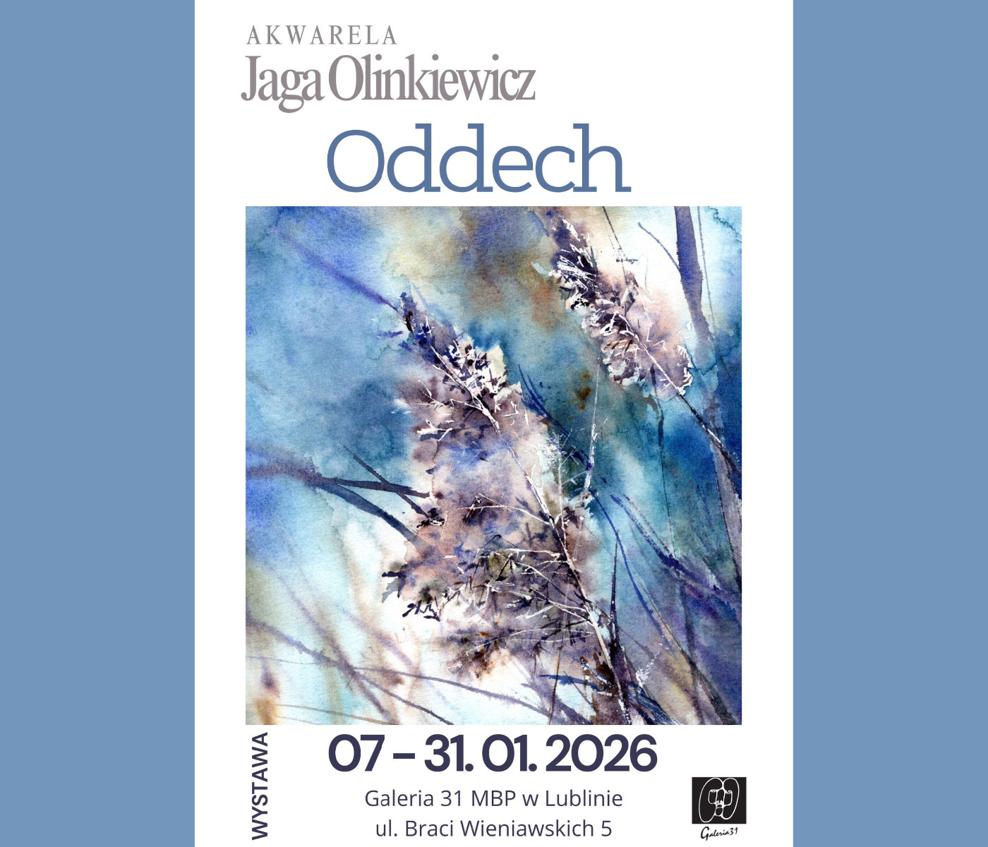 Galeria 31 (Filia nr 30 MBP Lublin, ul. Braci Wieniawskich 5) zaprasza na wystawę akwareli Jagi Olinkiewicz "Oddech", którą będzie można oglądać od 7 do 31 stycznia 2026 roku.