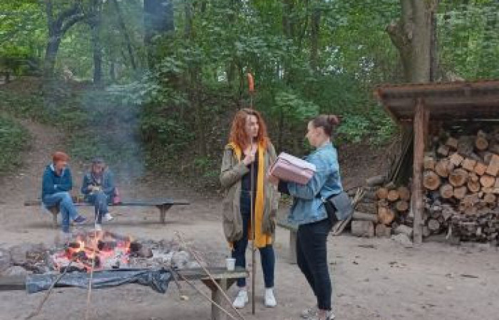 Typowe ogniskowe menu zostało zdeklasowane przez własnoręcznie robione babeczki Marii w trzech różnych smakach. Zniknęły błyskawicznie. Była muzyka, tańce i śpiew.