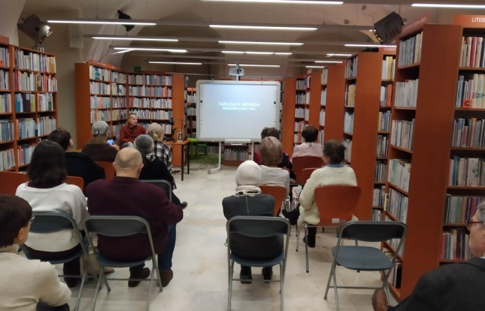 W renesansie wykorzystał go w swoich obrazach „Narodziny Wenus”i „Powracająca Judyta” Sandro Botticelli. Nawiązanie do motywu możemy także odnaleźć we fresku Domenico Ghirlandaio „Narodziny Jana Chrzciciela”, „Wyjściu Mojżesza w Egiptu” Pietro Perugino, czy „Uczcie Heroda” Filippo Lippiego, gdzie przeszedł transformację z przedstawienia o charakterze mitycznym na religijne. W płaskorzeźbie Bertoldo di Giovanniego „Ukrzyżowanie” widzimy wędrówkę znaczeniową motywu od szaleństwa i ekstazy do rozpaczy – postać Marii Magdaleny. Uczestnicy z wielkim zainteresowaniem wysłuchali wykładu. Zapraszamy na kolejne spotkania.