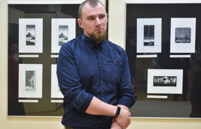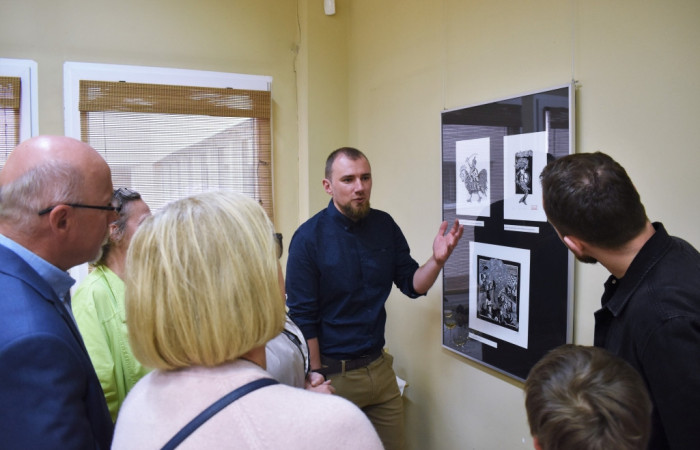 W czerwcu Galeria 31 ma przyjemność prezentować linoryty Łukasza Łasisza. Na wernisażu autor opowiadał o technice tworzenia linorytu i o cyklach prezentowanych na wystawie.