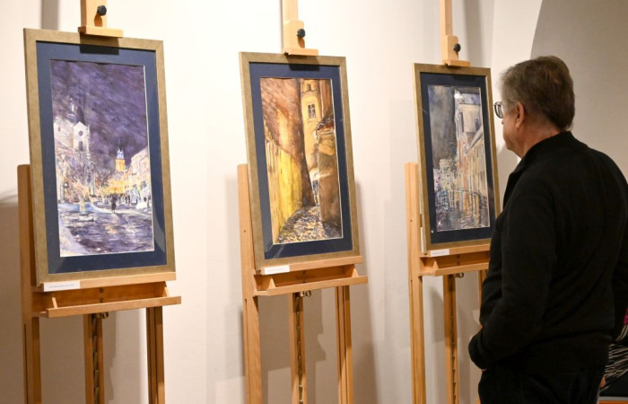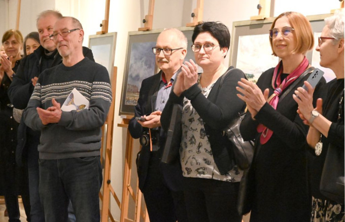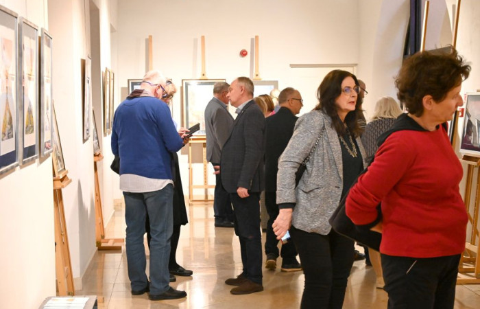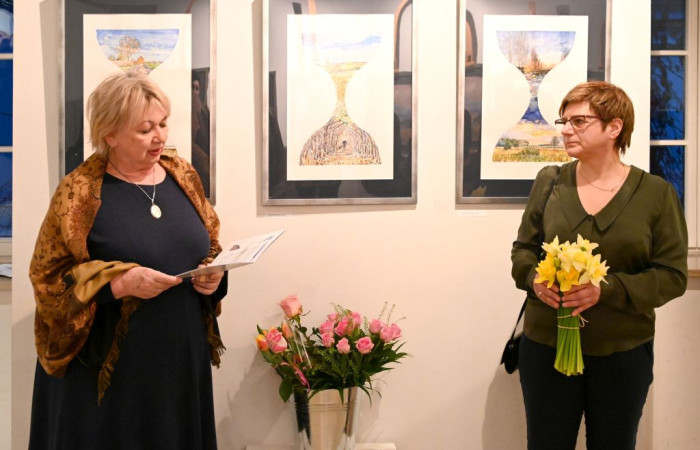 Oprócz akwareli na wystawę składają się pejzaże zamknięte w charakterystycznym kształcie klepsydry. Ten cykl stanowi symbol upływającego czasu, koresponduje również z obrazami pejzaży i widokami miasta uwiecznionych o różnych porach dnia i roku. Myślę, że każdy z państwa znajdzie na tej wystawie coś, przy czym zatrzyma się na dłużej