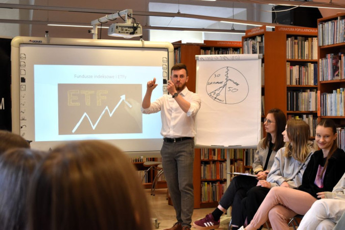24 kwietnia 2024 roku w Filii nr 2 Miejskiej Biblioteki Publicznej w Lublinie odbyło się drugie spotkanie edukacyjne dla młodzieży w ramach projektu „Pieniądze bez tabu” dofinansowanego przez Fundację Empiria i Wiedza w programie „Kierunek Sukces” - II Edycja. Spotkanie „Jak zostać bogatym. Od oszczędzania do inwestowania” poprowadził Kamil Paszko, student Zarządzania na Uniwersytecie Marii Curie Skłodowskiej w Lublinie, członek Koła Naukowego Ekonomistów oraz Koła Naukowego Zarządzania i Marketingu.