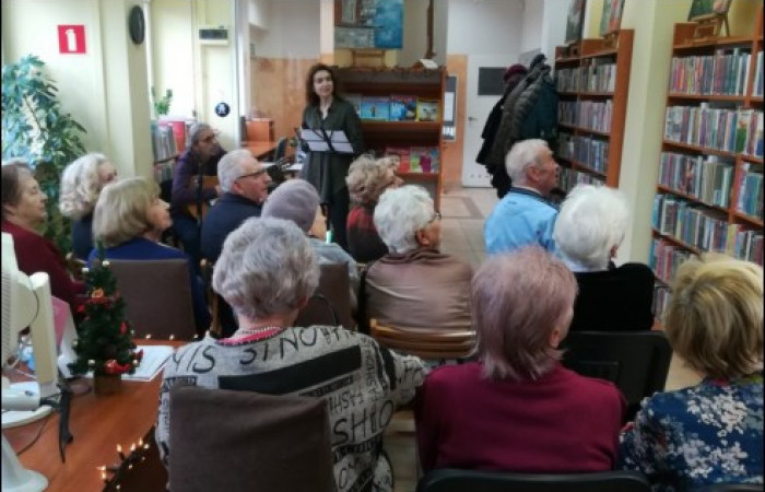 Wraz z Seniorami z CUS miałyśmy dziś ogromną przyjemność wysłuchać koncertu kolęd i pastorałek w wykonaniu Justyny Prokop, naszej koleżanki pracującej w Filii nr 10 oraz akompaniującego jej na gitarze Wiesława Pawłowskiego, lubelskiego muzyka, poetę, kompozytora.