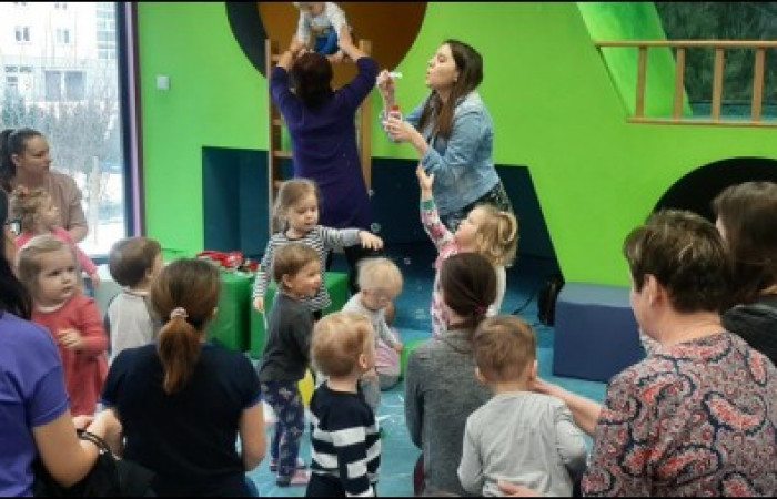 Kolejne zajęcia szeptankowe w Filii nr 38 za nami! Na maluchy czekały: książeczka o kameleonie, bańki mydlane oraz zabawa z papierowymi kulkami i śniegiem. Zajęcia zakończyło malowanie balonami.