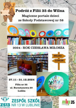 Przenieśmy się w Filii nr 35 przez kolorowe portale do Wilna! Trochę sentymentalna, trochę współczesna podróż śladami Czesława Miłosza (w jego roku patronackim), w którą zabrały nas dzieci ze Szkoły Podstawowej nr 58.